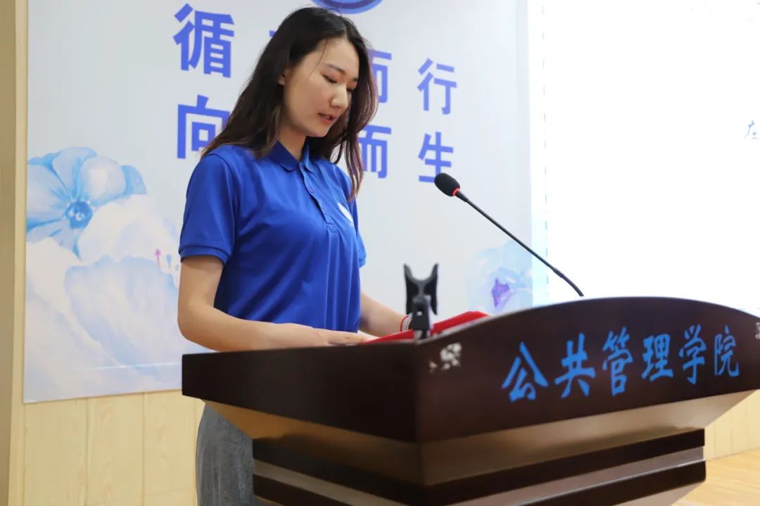 全日制毕业生代表覃红羽回忆读研三年的收获,并深刻感谢麻豆tv 老师的教导以及麻豆tv 为MPA同学提供的实践平台,认为选择就读MPA专业是勇敢且正确的决定。非全日制毕业生代表何荣与大家分享其读研后的感悟,认为读研不在于自由的呼吸而是使命的召唤,是自我提升的需要,是国家大事所趋。我们需要打开自身格局,把个人成长与单位、行业乃至国家发展紧密挂钩,最终实现多方共赢。在校生代表王婷婷向毕业生们道一声感谢,并表示在未来将以学长学姐们为榜样,勤勉刻苦、脚踏实地,坚守好本职任务,展现出公管人的精神面貌,奉献自己的青春力量。