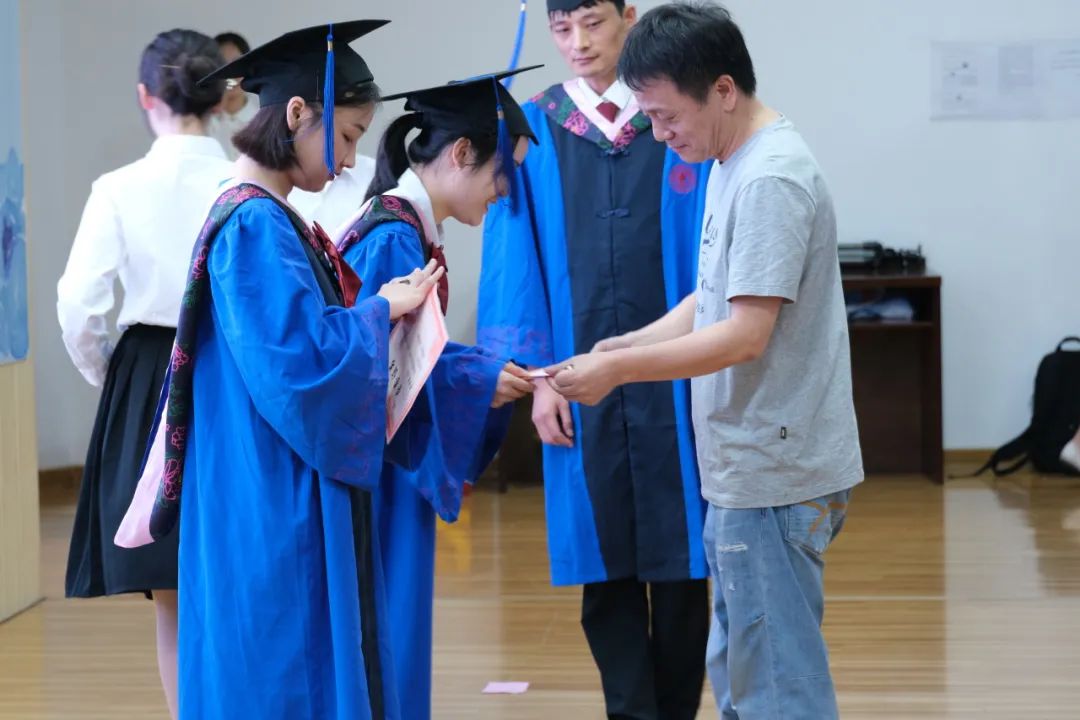 学位授予环节,周均旭宣读学位授予决定,毕业生们随着礼乐声依次上台。毕业班班主任雷文艳、钟革秋为学生整理衣冠,聂鑫为毕业生行拨穗礼,并一一合影,黎昌珍教授与魏万青教授分别和毕业生握手祝贺。最后,在全体师生的校歌大合唱中,麻豆tv公共管理专业硕士(MPA)毕业典礼暨学位授予仪式圆满落幕。