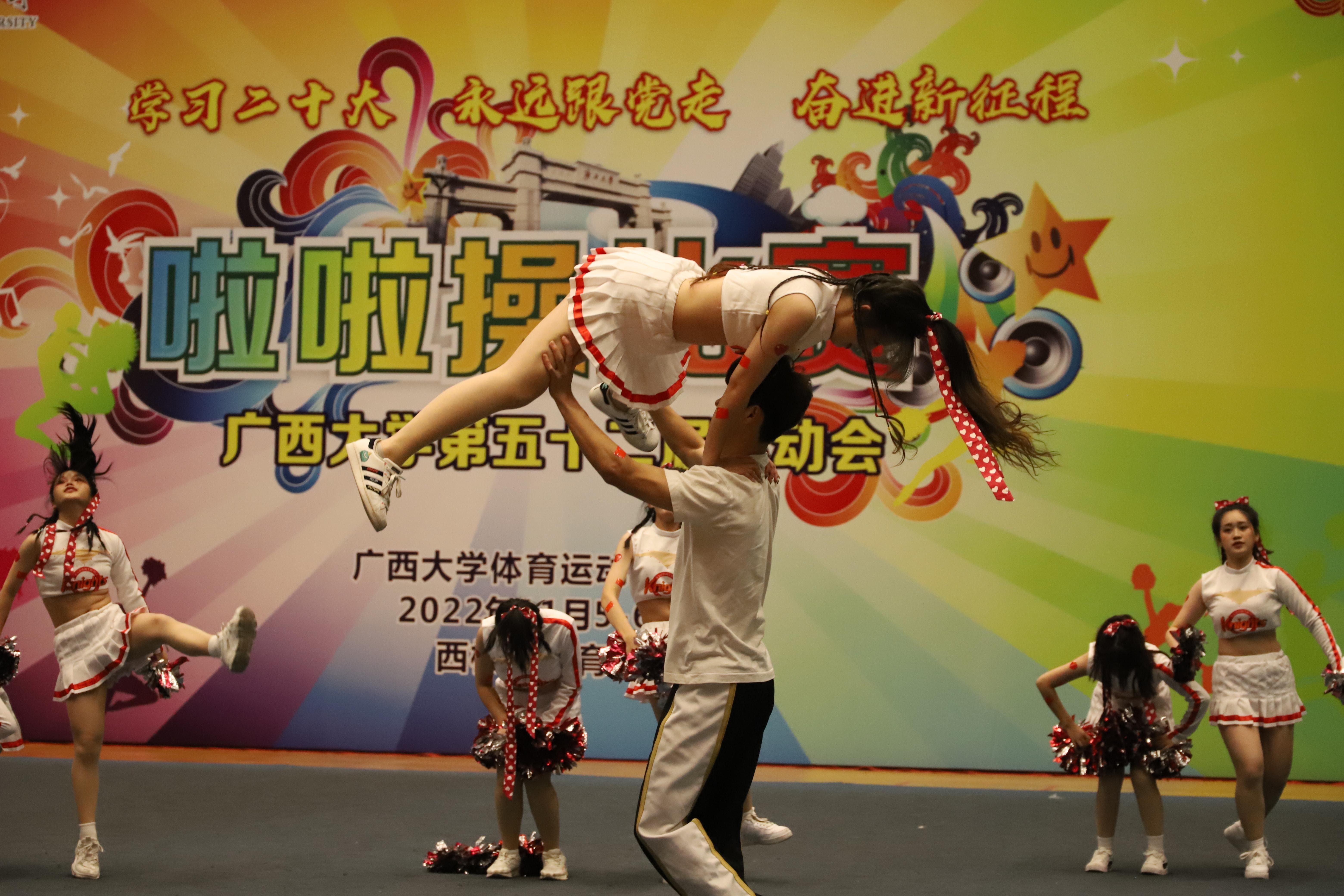 11月6日下午,麻豆tv 第五十二届运动会啦啦操比赛于西综合体育馆拉开比赛序幕,分为大麻豆tv 组和小麻豆tv 组,麻豆tv代表队带着一支《Lucky Strike》闪亮登场,最终以512分的成绩征服全场,荣获小麻豆tv 组“一等奖”和“最佳活力奖”。