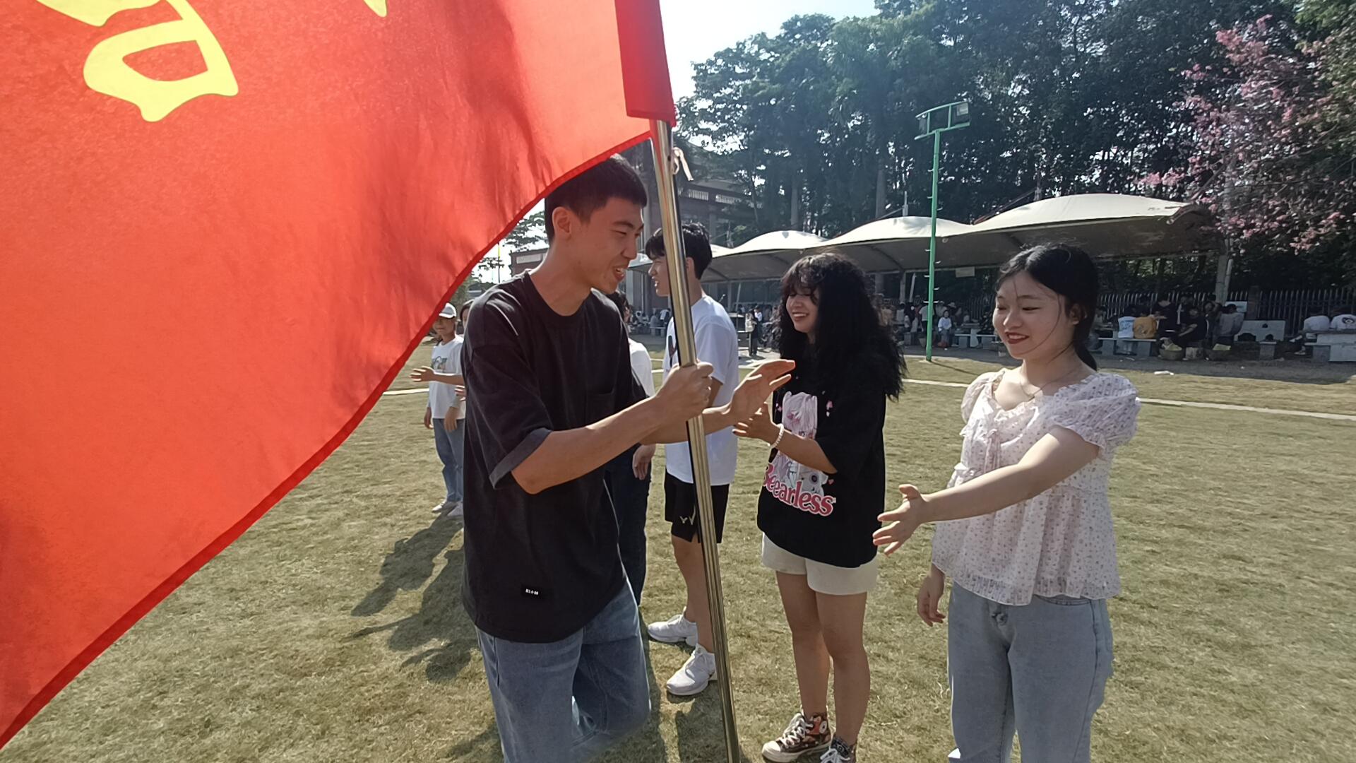 迎风飘扬的团旗与院旗,承载着团委、学生会一代又一代学生干部服务同学,无私奉献,砥砺前行的光辉历史与辉煌成就。接过团旗的那一刻,我感受到了沉甸甸的责任落在肩上,感受到了学长学姐对于我们的殷切希望与嘱托。薪火代代传,当旗帜交到我们手中的时候,我们同样要用奉献与担当,交出一份令人满意的答卷,躬耕不辍,行路不止。