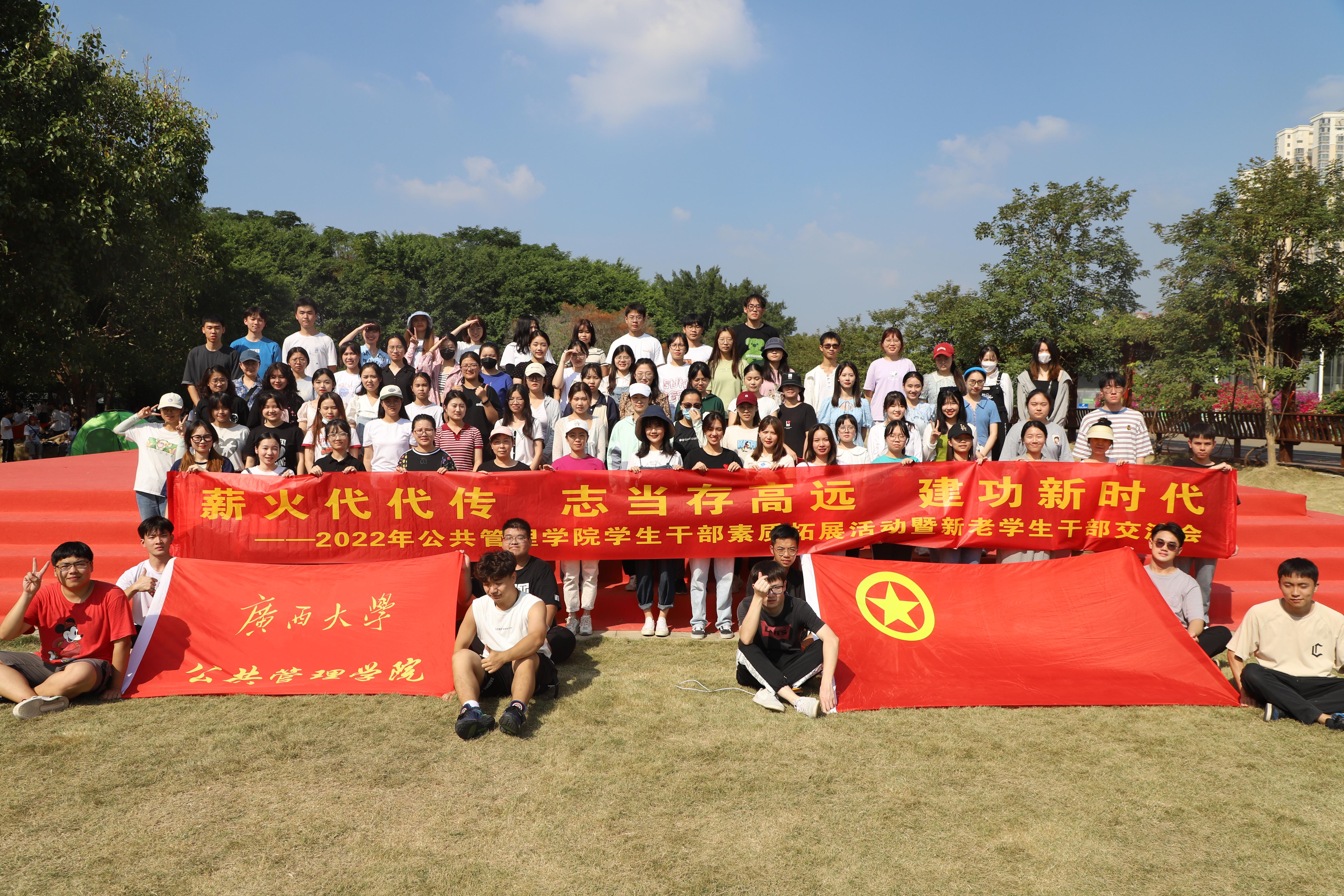 麻豆tv 于11月13日在八桂田园开展素质拓展活动暨新老干部交接仪式。麻豆tv 19级至21级团委学生会干部代表、共进连连干代表、麻豆tv 各班委代表、研究生会干部代表等参与活动。院党委副书记庞惠老师、院团委书记黄文静老师、院团委副书记刘佩瑶老师和辅导员侯俊丽老师受邀参加。