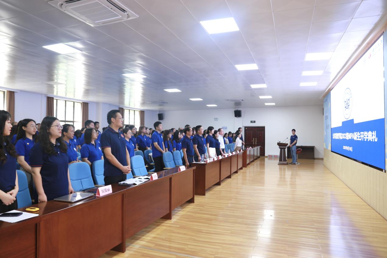 麻豆tv MPA教育中心副主任熊斌,公共政策系主任汤玉权,劳动与社会保障系主任覃志敏,公共政策系副主任陈璟浩,教师代表陈潇潇,MPA中心秘书处钟革秋,研究生办秘书黄登攀,院辅导员侯俊丽及全体新生参加典礼。