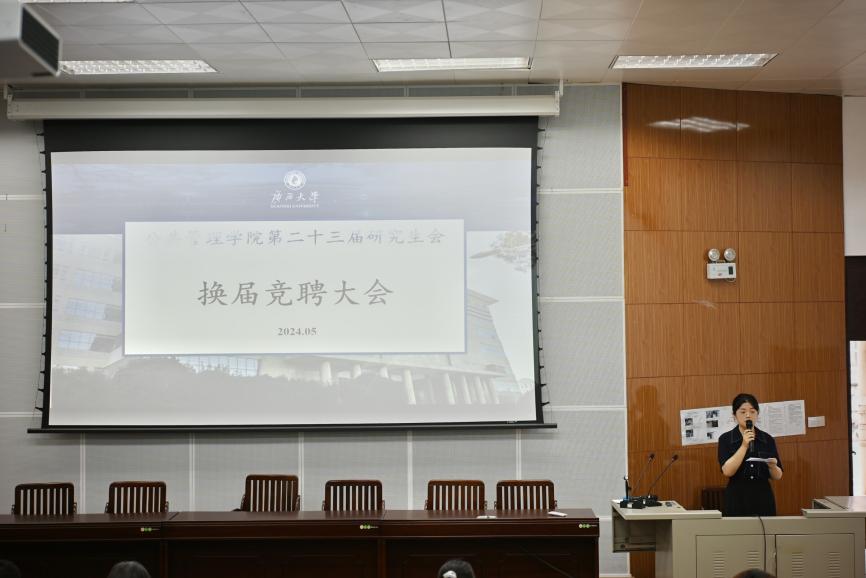 本次大会由研究生会秘书部韩泽主持,共设演讲、投票以及老师总结发言三个环节。