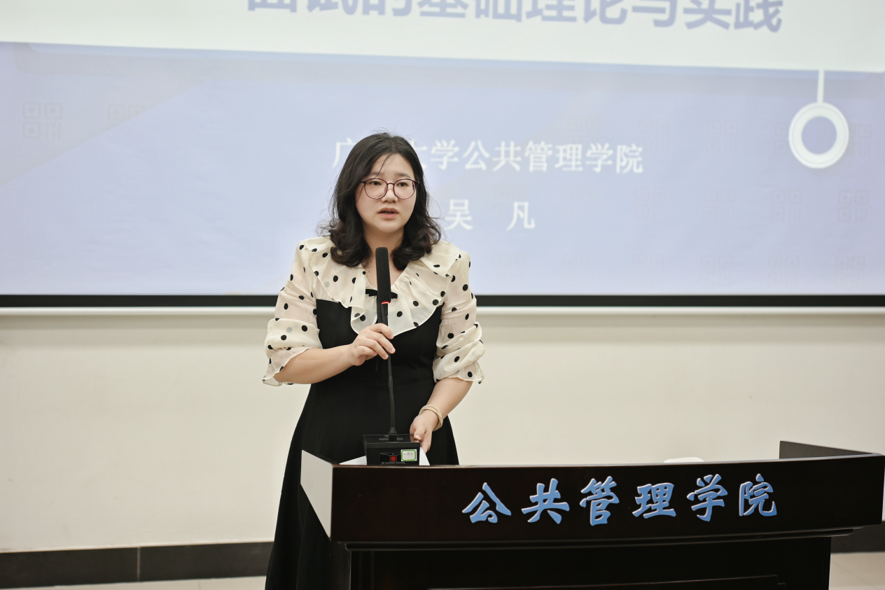 吴凡指出,面试是一种用人单位根据需求,在特定场景下,通过考官与应试者之间面对面的直接交谈及观察,测评应试者的知识、技能、工作经验、性格、态度和待人接物方式等,以判断求职者与报考职位是否匹配的一种测评方式。她特别强调,面试中的每一个问题都是考官精心设计的,测试的是求职者对职位的忠诚度,同时通过观察语速、表情等方式考察求职者的细心、责任心等综合素质。因此,吴凡建议同学们要多争取在台上表达的机会,学会自我表现。