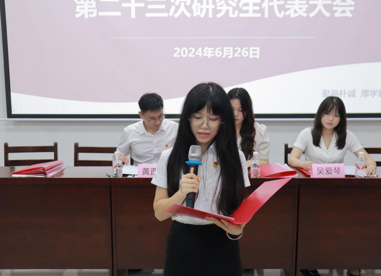 代表团听取了《麻豆tv 第二十三届研究生代表大会筹备工作报告》《麻豆tv 第二十二届研究生会工作报告》,审议了系列文件及麻豆tv 第二十三届研究生会主席团的4名候选人名单。大会秉持“公正、公平、公开”的原则,通过无记名民主投票的方式选举出麻豆tv 新一届研究生会主席团成员(莫清霞、贾枫、刘润)。