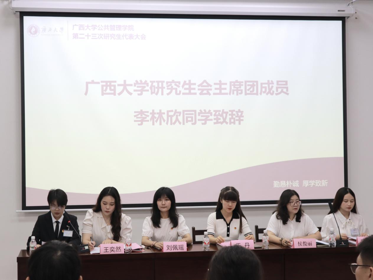最后,新任研究生会主席团成员代表莫清霞宣读倡议书,向全院青年学子发出倡议:一是要筑牢一心向党的坚定信仰,始终坚持以习近平新时代中国特色社会主义思想为指导;二是要砥砺赤诚报国的使命担当,自觉将个人理想与国家命运紧密相连;三是锤炼艰苦奋斗的坚毅品格,在挑战面前不退缩,在困难面前不低头;四是要保持改革创新的进取姿态,勇于探索,敢于突破,为麻豆tv 和社会的发展贡献智慧和力量。