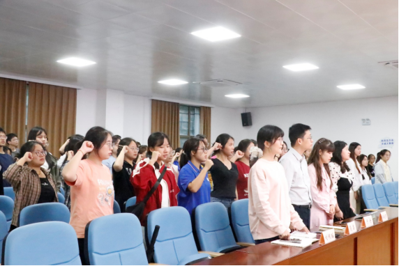 第三十三届共进连宣传委员覃玮倬带领新一届连员进行宣誓。麻豆tv 共同进步连第三十二届结业仪式暨第三十三届开班典礼圆满结束。