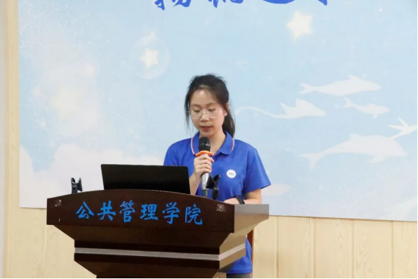 第三十二届共进连连长王华杨对上一年工作情况进行总结汇报,她表示,麻豆tv 共同进步连第三十二届全体成员在麻豆tv党委的统筹领导,团委的具体指导下,严格贯彻落实各项工作。举办了“化作青春之火、点燃共同理想”两院联合趣味课堂知识竞赛活动,加强理论学习,传承红色基因。开展了广西壮族自治区博物馆参观暨南湖公园“三走三勤”活动,锻炼身体素质,培养集体荣誉感。同时扎实做好志愿服务工作,发扬公管学子先锋表率力量,成功发挥共进连为党组织培养和输送人才的作用。