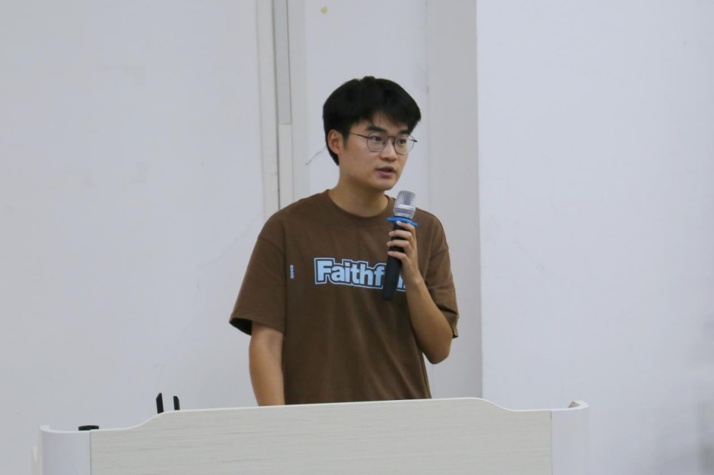 黄西平同学围绕个人成长与实践等内容,为在场同学带来自己的经验分享。他首先强调了“打开眼界,审视美丑”的重要性。他认为,拥有足够的见识储备是分辨好坏的基础,鼓励同学们积极从讲座、论文、书籍中汲取知识养分,不断充实自我。其次,他指出实践是将理论转化为认知的关键,只有亲身实践,才能真正理解知识的内涵。黄西平提出行动力在于“果断行动,绝不拖延”,倡导同学们提高执行能力,拒绝空想,用实际行动追逐目标。最后,他以“心有所畏,研有所戒,行有所止”为结语,提醒大家注重自身言行,把握人际交往中的距离感,在成长道路上时刻保持清醒与自律。