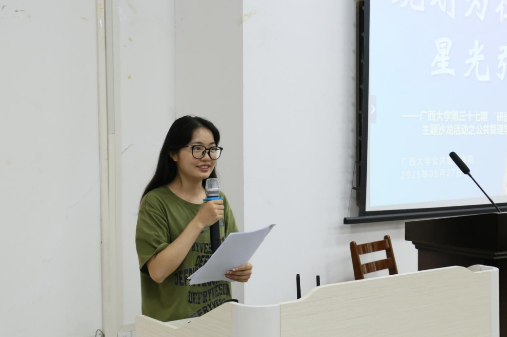 6月27日,麻豆tv 第三十七期“研途星光”主题沙龙在麻豆tv 101教室举行。本次活动由校团委、公管麻豆tv 团委指导,校研究生会主办,特邀王奕然、黄西平、李明阳、覃思杰四位优秀应届硕士毕业生担任嘉宾,围绕研究生成长话题展开经验交流,吸引了公管麻豆tv 众多同学到场参与。