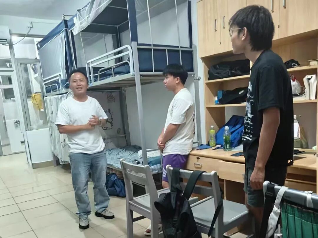 在宿舍里,聂鑫亲切地问候每位新生,表达对他们的关怀。他向新生们分享了人生经历和心得感悟,在欢声笑语中拉近了彼此的距离。他对新生们提出几点期望:一是重视自我规划,提升自控力,在刻苦学习的同时也要加强体育锻炼,适应大学生活的节奏;二是勇于探索和挑战,锻炼解决问题能力,要敢想敢为、善作善成,用创新推动个人和国家的发展;三是树立远大志向,努力寻找自己热爱的事业,在追求梦想和服务人民的过程中,实现个人价值与社会价值的统一。