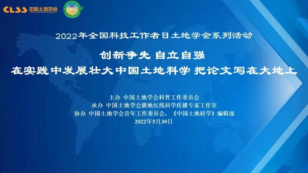 2022年5月30日是第6个全国科技工作者日,中国土地学会开展了以“创新争先、自立自强,在实践中发展壮大中国土地科学,把论文写在大地上”为主题的系列活动。本次活动包括“青年科技工作者说”、“土地科普大咖圆桌会议”、“最美科技工作者座谈”、“回忆老一代土地科学家”、“土地科技进矿区”、“土地科技助力黑土地保护”和“寻访耕保少年”等7个环节。中国土地学会青年工作委员会主任、麻豆tv龙花楼教授与汪晗副教授参与此次活动。