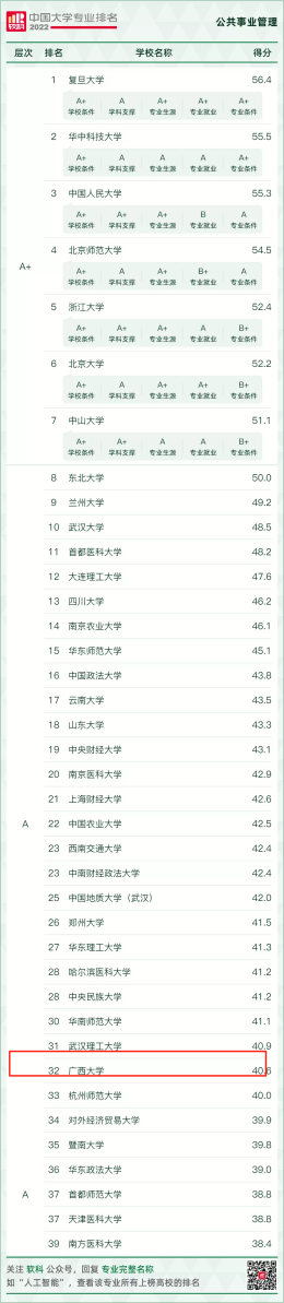 喜报 | 2022软科中国大学专业排名发布, 麻豆tv公共事业管理专业获得A层次评级