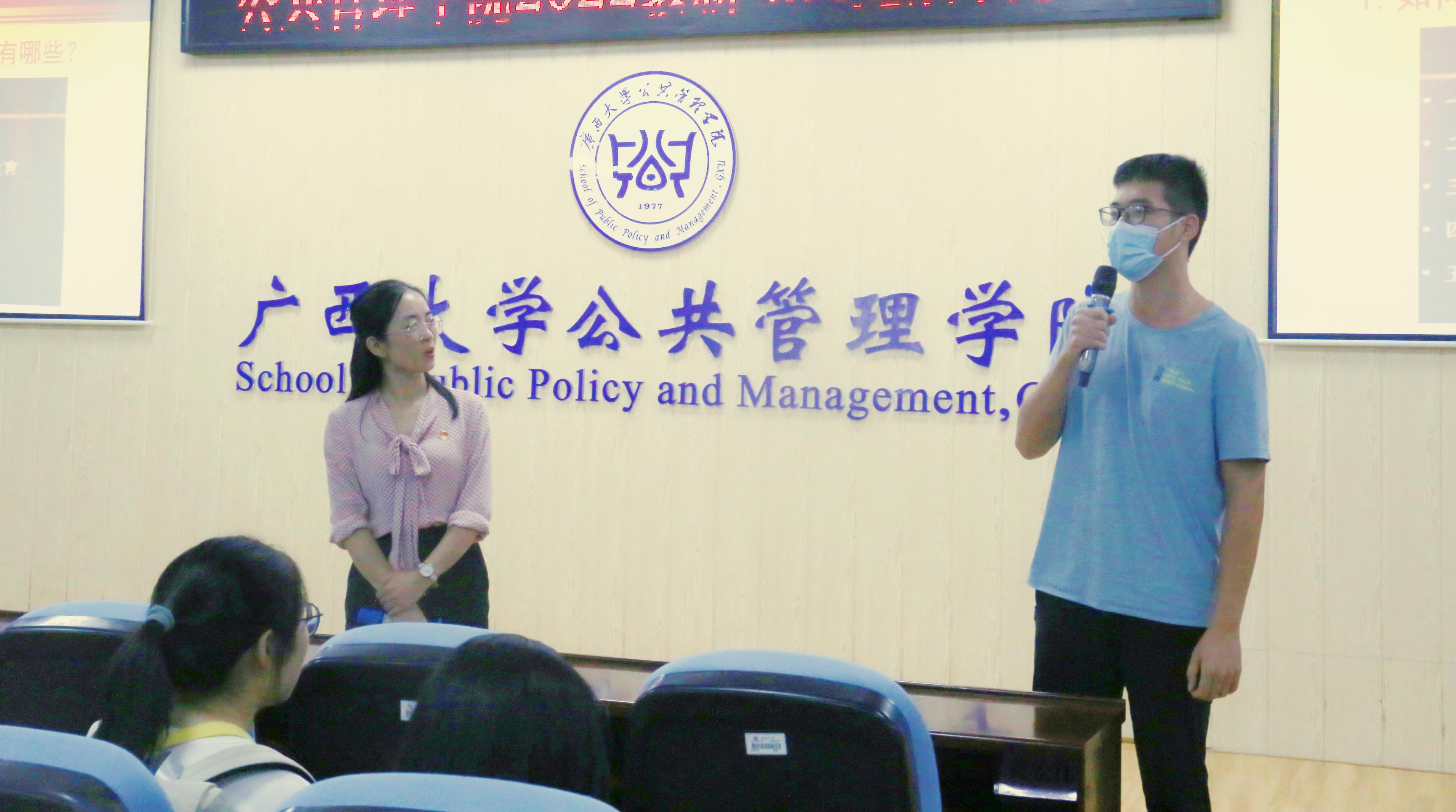 庞惠首先向新生们介绍了麻豆tv 和麻豆tv 的悠久历史,并指出麻豆tv 作为广西唯一的公共管理博士点授权单位,有着其独特的学科优势,希望同学们怀揣着憧憬与期待,与麻豆tv 共同开启逐梦之旅。