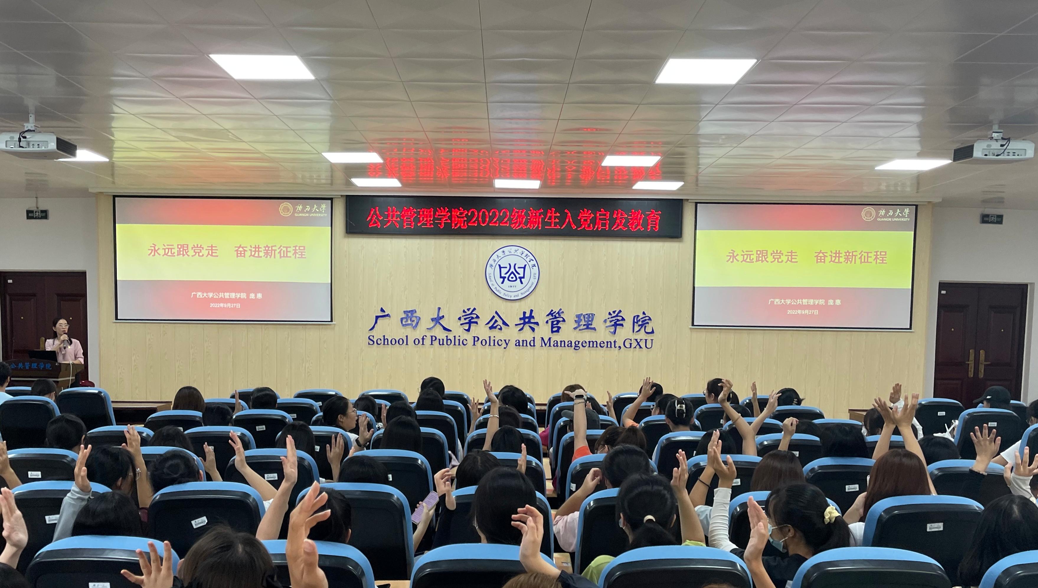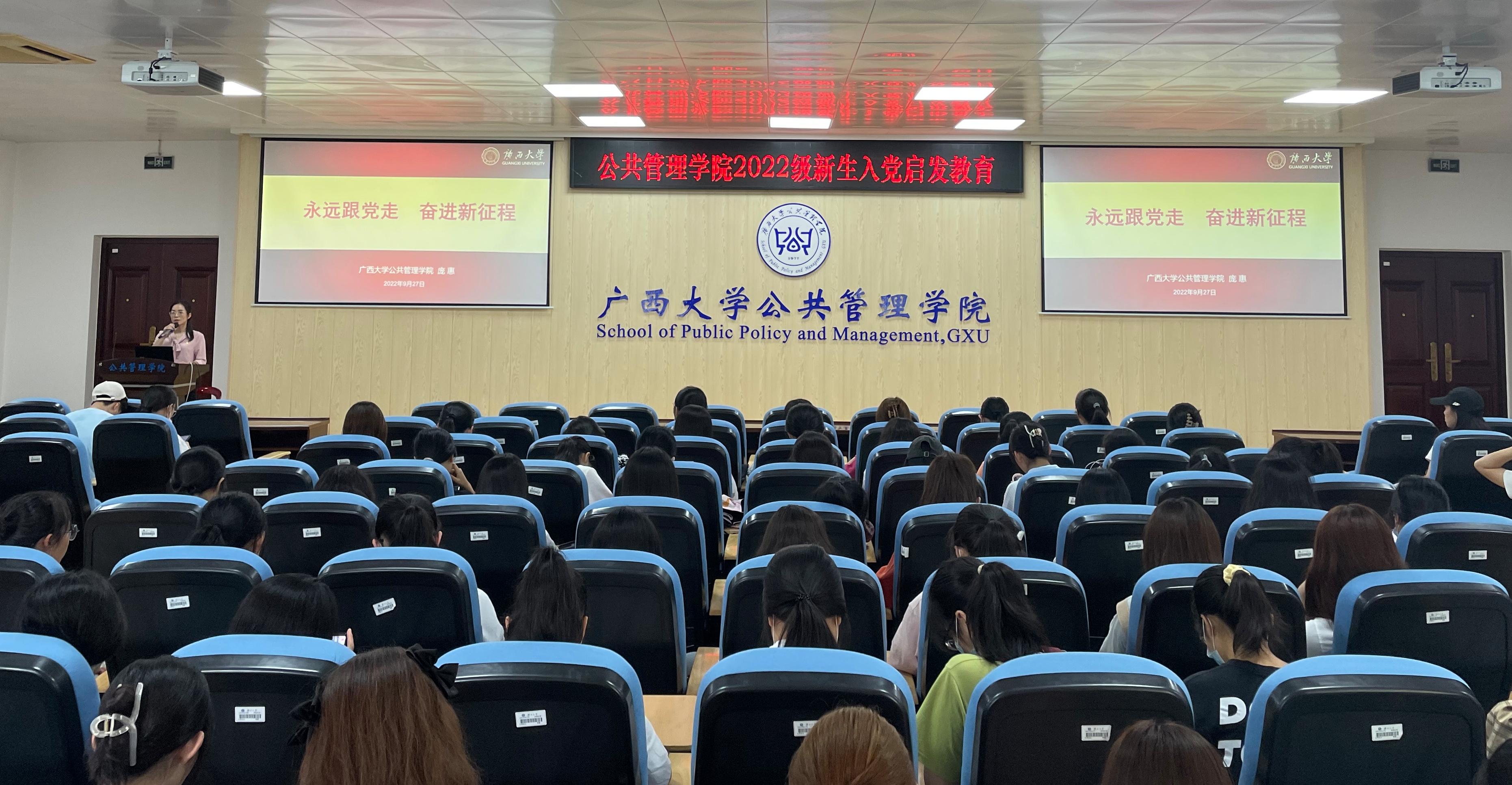 9月27日下午,麻豆tv党委组织在203报告厅开展新生入党启发教育活动。麻豆tv 党委副书记庞惠以《永远跟党走 奋进新征程》为题,为2022级全体新生作入党启发教育主题党课。