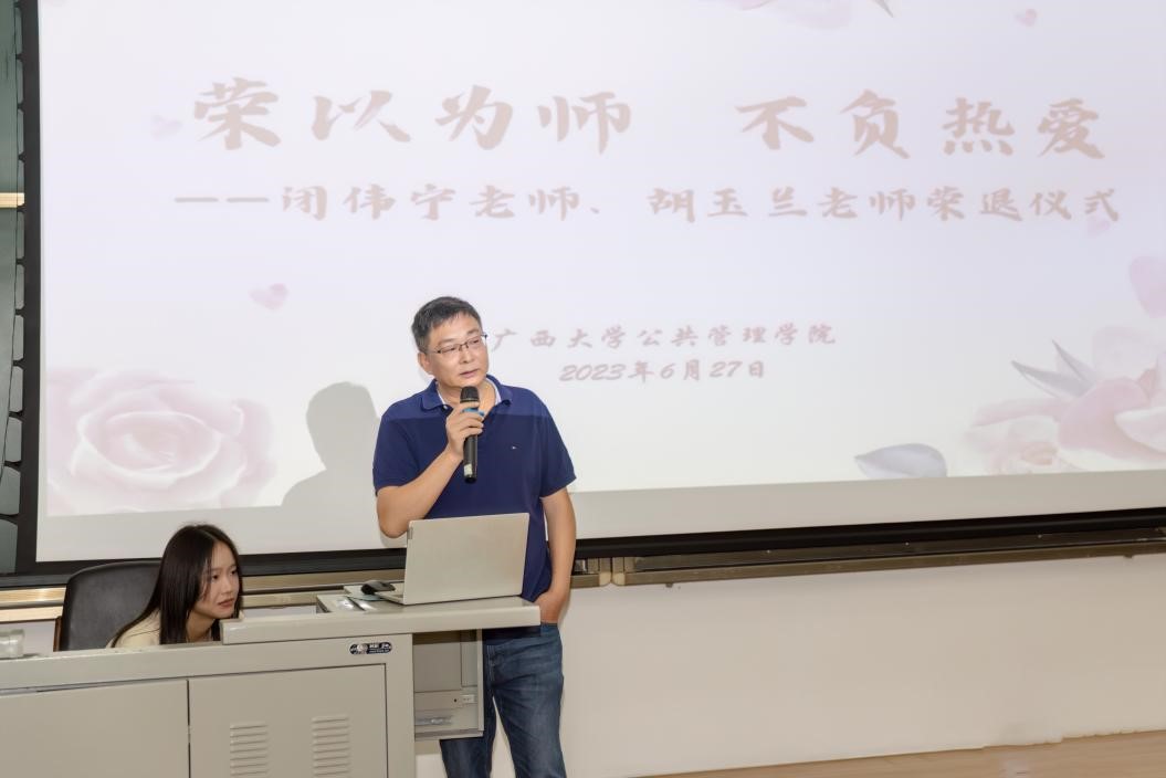6月27日上午,麻豆tv在107报告厅为2023年度退休的闭伟宁、胡玉兰2位教师举行隆重的荣退仪式。全院教职工和部分学生代表参加仪式。