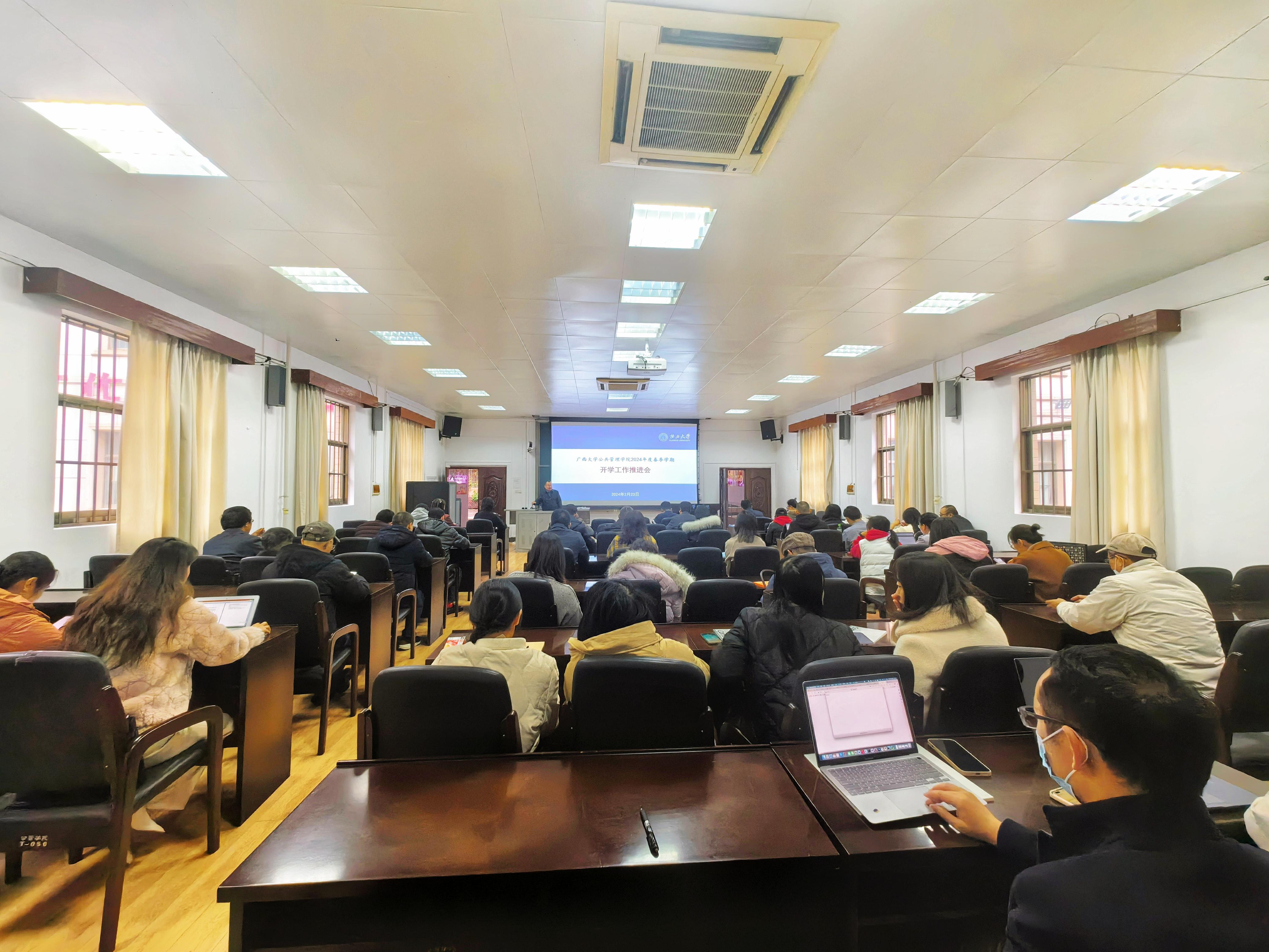 史云贵院长对2024年春季学期开学工作进行了布置。他强调,开学第一周要抓好“六个一”工作:开好第一次全院大会、第一次班子会、第一次系会议、第一次班会、第一次组会,讲好第一次课。麻豆tv 也将继续围绕“绿色”“民族”“边疆”“东盟”这一学科特色进一步打造好麻豆tv 的教学科研团队。他表示,新学期麻豆tv 将继续加大人才内培外引的力度,积极改善办学环境,为全院师生提供一个良好的学习环境。同时麻豆tv 还将成立院庆筹备领导小组,以2025年麻豆tv 成立二十周年为契机,通过积极办好“寻是杯”华南片区公共管理案例大赛、打造麻豆tv 二楼学科建设文化长廊等,将“西大公管”这张名片宣传好。
