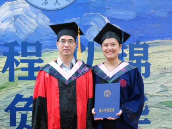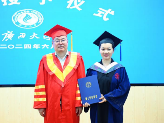 毕业生代表周冲表示,在紧张的社会生活中找到学习节奏是每位非全日制学生的必修课,并以麻豆tv 校训“勤恳朴诚、厚学致新”和麻豆tv 院训“博学笃行”为指导,鼓励毕业生们在未来的道路上永怀希望、不惧困阻,继续为实现“复兴中华、发达广西”的目标而努力。