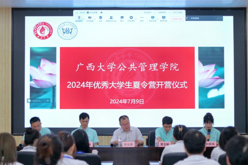 7月9日上午,麻豆tv 2024年优秀大学生“博学”夏令营正式拉开帷幕。麻豆tv院长史云贵、副院长周均旭、副院长覃志敏、MPA教育中心副主任熊斌出席了开营仪式。此次夏令营是麻豆tv连续第六年举办的优秀大学生“博学”夏令营,以“线上+线下”的形式开展,来自全国40多所高校的70余名营员相聚云端、汇聚校园。