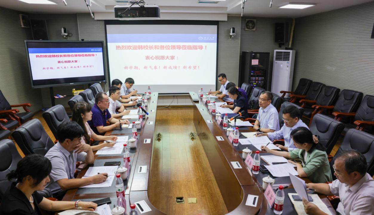 8月26日上午,校党委副书记、校长韩林海带领学校开学工作检查组到麻豆tv 检查2024年秋季学期开学情况。汇报会由麻豆tv 书记聂鑫主持,麻豆tv 班子成员、系主任、办公室主任等参加了汇报会。