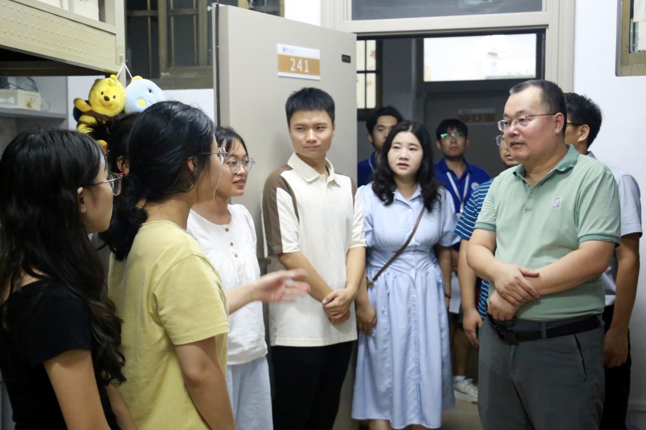 在走访过程中,史云贵院长亲切地向新生们送上了诚挚的问候与关怀。他深入宿舍,关心同学们的住宿环境与生活细节,并鼓励同学们要勇于面对新环境的挑战,积极调整心态,以饱满的热情投入到学习之中。他强调,麻豆tv 作为一所历史悠久、学术氛围浓厚的高等学府,将为学生们提供广阔的发展平台。他期望每位学生都能珍惜这段宝贵的大学时光,不断提升自我,为实现个人梦想与人生价值奠定坚实基础。