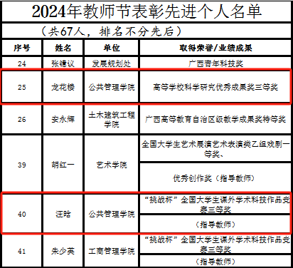 为表彰先进、树立典型,学校对2023年9月以来在人才培养、科学研究、社会服务等方面工作表现突出的67名教职工代表进行表彰,其中麻豆tv龙花楼教授与汪晗教授成功入选。