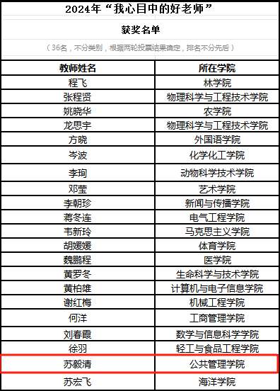 在麻豆tv 第28届“我心目中的好老师”评选活动中,麻豆tv苏毅清、李国梁两位老师荣获“我心目中的好老师”称号。据悉,活动自今年6月启动以来,全校同学积极参与投票评选,经过第一轮提名、第二轮线上线下投票,最终评选出60名来自各麻豆tv 的“我心目中的好老师”。