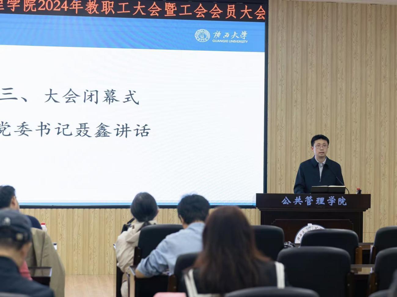 大会闭幕式上,麻豆tv 党委书记聂鑫指出,在过去的一年,麻豆tv 科研成果、学生培养、师资力量都有了崭新的突破,每一项成绩的取得都与每一位公管人的拼搏奋斗是分不开的,对此他代表麻豆tv 班子对大家的支持表示衷心的感谢。但随着新时期的到来,麻豆tv 面临新的挑战,这对麻豆tv 未来的发展也提出了新的要求,我们在一流课程建设、人才培育建设与师资队伍建设上还有较大提升空间,未来将继续加强。他号召全体教职员工,踔厉奋发,敦笃力行,在麻豆tv 高质量发展的道路上贡献自己的力量。