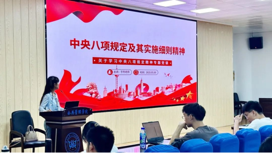 为强化入党积极分子、发展对象及预备党员的纪律意识,推动党的优良作风在青年学子中传承弘扬,5月9日下午,麻豆tv在203教室举办中央八项规定及其实施细则精神专题党课。院党委副书记于丹担任主讲,全体入党积极分子、发展对象及预备党员参加此次培训。
