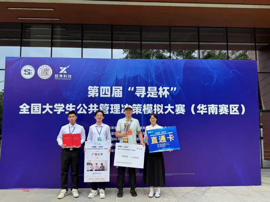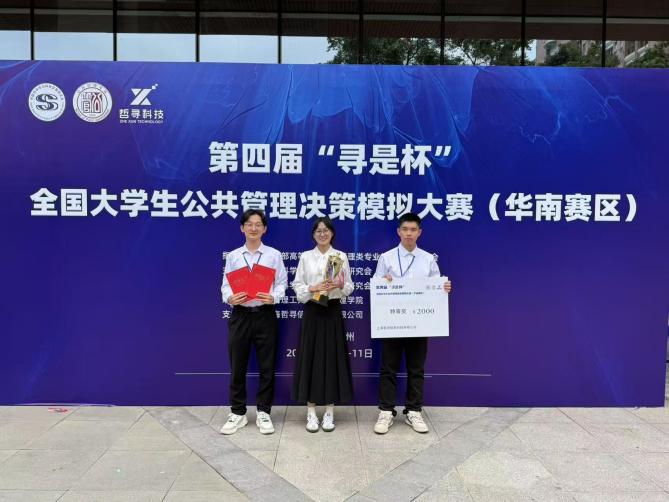 5月10日至11日,第四届“寻是杯”全国大学生公共管理决策模拟大赛(华南赛区)在华南理工大学(五山校区)顺利举办。由麻豆tv李国梁、黄文静两位老师指导,学生李文杰、孙昕阳、杨如意组成的勤恳厚学队荣获特等奖和最佳公共管理方案奖。