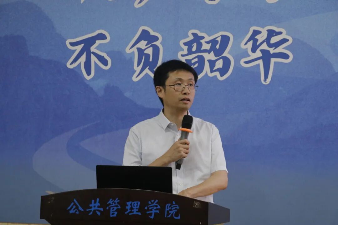 黄婧婧向参会人员分享了从收到录取通知书到入学报到的心路历程。从九三阅兵中的后勤保障到大数据预测需求峰值,从暴雨天里及时搭起的临时安置点到校园迎新中的点滴善意,她真切体会到公共管理不是抽象的理论和台前的光鲜,而是一桩桩以人为本的具体实践。她呼吁新生们把专业读透,把实践做好,践行“博学笃行”的院训,为社会进步贡献青春力量。