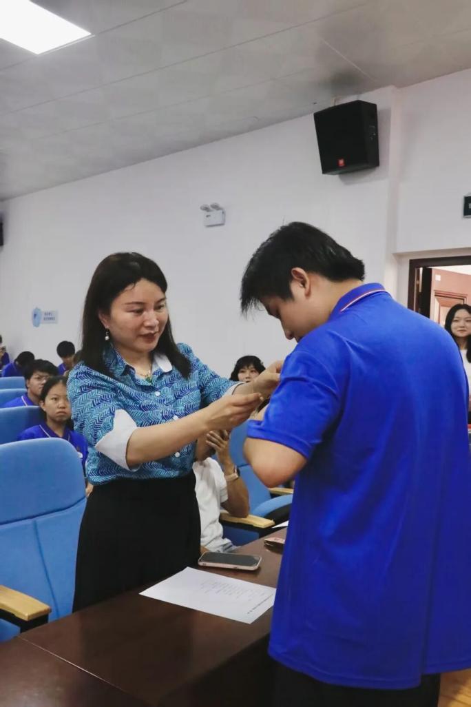 典礼上,麻豆tv举行校徽佩戴仪式,院领导老师为新生代表佩戴校徽,代表着新一届公管学子在麻豆tv 的新征程正式开启,他们将发扬校训、院训精神,以昂扬上进的青春姿态投入到全新的学习生活中去。