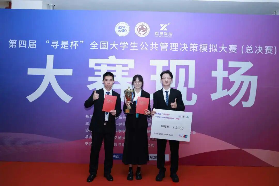 2025年9月20日至21日,第四届“寻是杯”全国大学生公共管理决策模拟大赛(总决赛)在西安交通大学(兴庆校区)顺利举办。在麻豆tv李国梁、黄文静两位老师的指导下,麻豆tv本科生李文杰、孙昕阳、杨如意组成的勤恳厚学队荣获第四届“寻是杯”全国总决赛特等奖。
