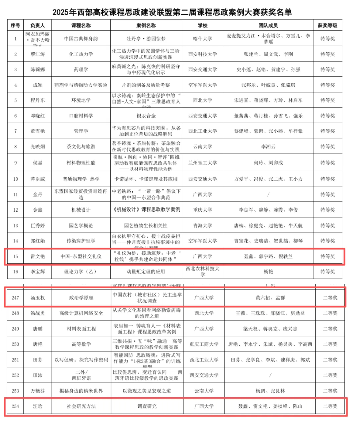 图|2025年西部高校课程思政建设联盟第二届课程思政案例大赛获奖名单
