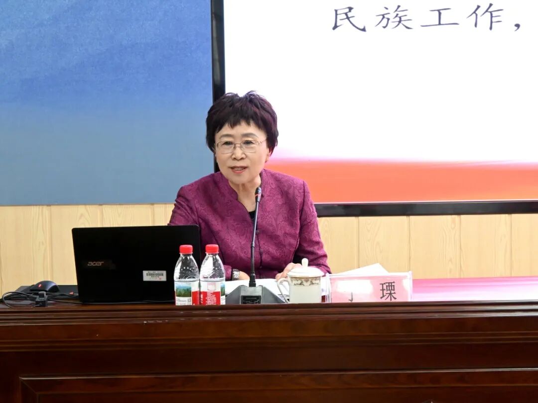 报告中,于瑮引经据典,通过一系列生动的历史故事,阐释了中华民族共同体意识的丰富内涵、民族融合的历史脉络和民族发展的时代需求,阐明了铸牢中华民族共同体意识在民族团结中的重要作用,剖析了文化认同与中华民族共同体意识的重要关系。在此基础上,她系统论述了铸牢中华民族共同体意识的实践要求,第一要筑牢共同的理想信念,培育共同的价值观念;第二要用共同目标汇聚力量,新征程上一个民族也不能少;第三要坚定文化自信,扎实推进文化保护传承利用工程;最后要促进民族交往交流交融,共建共享中华民族共有精神家园、共同富裕幸福家园、守望相助和谐家园、宜居康寿美丽家园、边疆稳定平安家园。