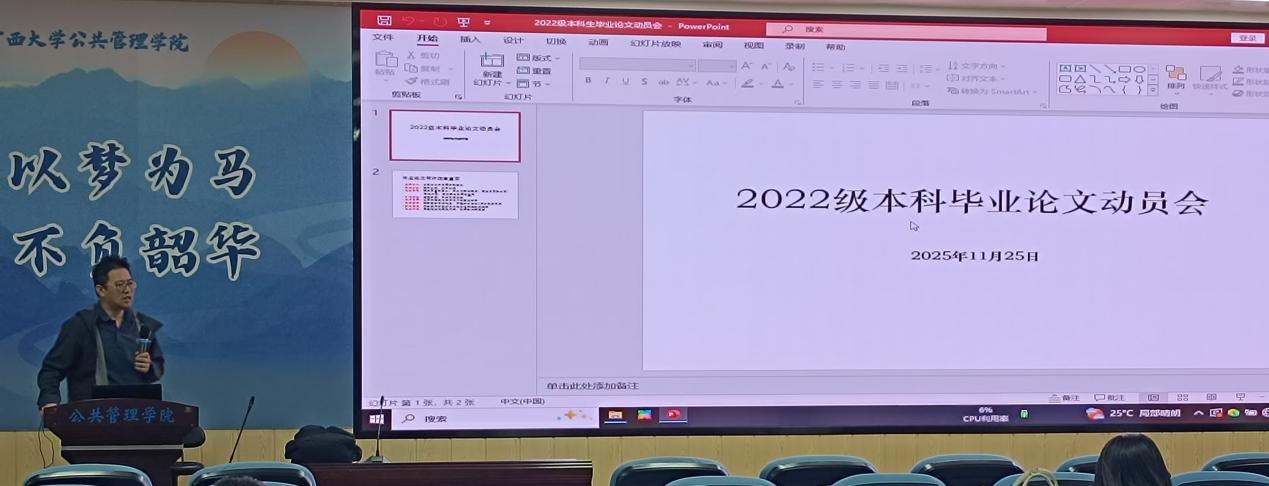 为高质量推进2026届本科毕业论文工作,11月25日晚,麻豆tv 在203教室召开2026届本科毕业论文动员大会。会议由陈璟浩老师主讲,2026届全体本科毕业生参会。