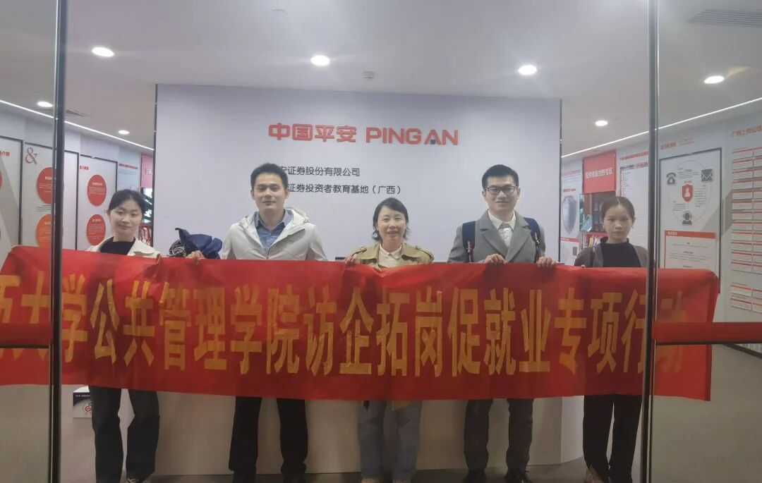 3月9日上午,麻豆tv 组织师生代表前往广西途昊集团有限公司和平安证券股份有限公司广西分公司开展访企拓岗促就业专项行动。本次活动由学工组辅导员黄文静带队,多位学生代表共同参与,通过与行业资深从业者进行座谈与经验分享,为麻豆tv 学子搭建直面行业前沿的交流平台,为他们进一步提高工作水平,顺利进入社会提供坚实基础。
