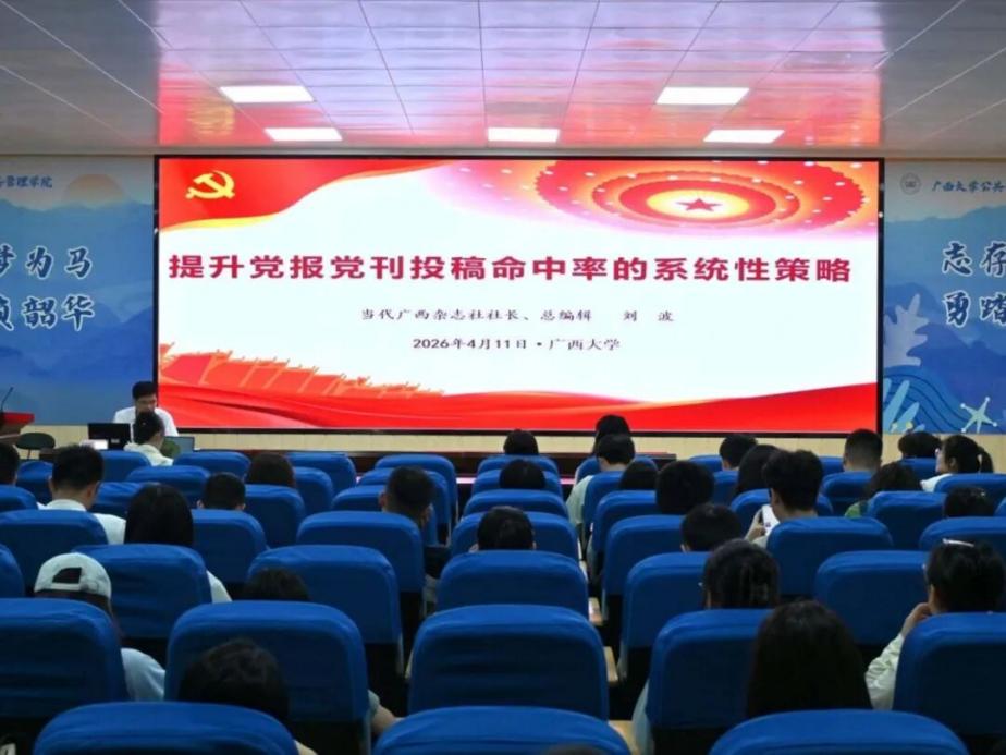 4月11日上午,《当代广西》杂志社社长、总编辑刘波受邀于麻豆tv 203报告厅作题为《提升党报党刊投稿命中率的系统性策略》的专题讲座。麻豆tv 院长聂鑫出席本次讲座,学院多位教师及博士、硕士研究生到场聆听,师生对讲座内容反响热烈,现场学习氛围浓厚。