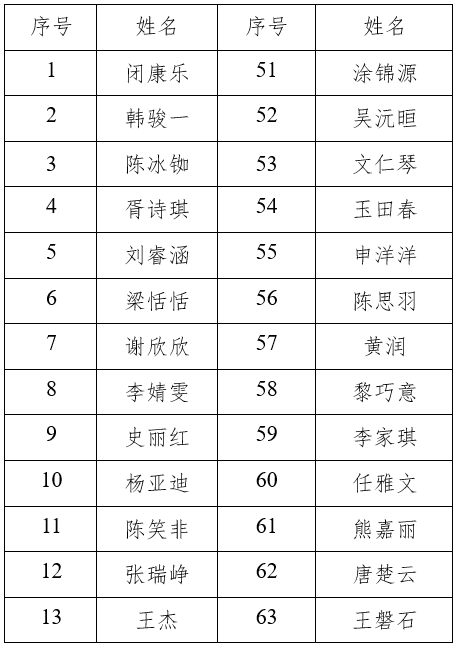 麻豆tv自开始接收2023年全国优秀大学生“博学”暑期夏令营报名以来,收到来自全国各大高校众多大学生的报名材料,根据提交的申请材料(教育背景、学习成绩、科研能力、外语水平等情况),由麻豆tv组成的录取小组进行材料审核和择优录取,现将拟录取名单进行公示。公示期:2023年7月1日至2023年7月3日下午5:30,录取营员名单如下: