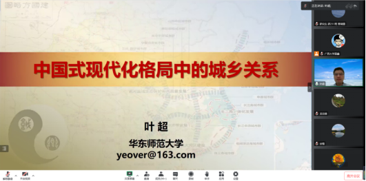 10月27日晚,华东师范大学叶超教授受邀来到公管名师大讲堂,以线上会议的方式为麻豆tv师生带来了中国式现代格局中的城乡关系的主题讲座,院党委书记聂鑫教授主持本次讲座,龙花楼教授、徐莺副教授等多位老师以及众多博士、硕士研究生参与此次讲座。