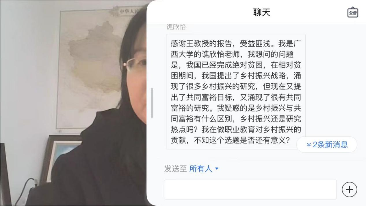 最后,王教授与参与讲座的师生开展了线上互动,详细解答师生提出的问题。魏副院长对王教授的精彩讲座致以诚挚的感谢,并邀请王教授到麻豆tv 与西大的师生做面对面的交流。本次学术讲座让师生们更加了解国内外的贫困研究状况,激发了老师们申请国家社科基金的热情,引起了同学们对我国贫困问题的思考和重视,增强了大家的民族使命感和爱国情怀。