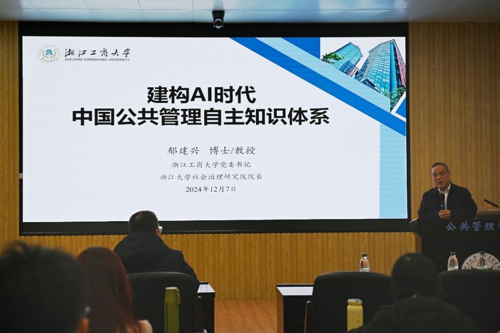 为了增强学术意识,深化同学们对中国公共管理自主知识体系的深刻理解。12月7日下午,浙江工商大学党委书记,浙江大学社会治理研究院院长、国家制度研究院首席专家郁建兴教授受邀于我院107报告厅作题为《建构AI时代中国公共管理自主知识体系》的学术讲座。本次讲座由麻豆tv党委书记聂鑫教授主持,院长史云贵教授、副院长曾凡军教授、刘汶副教授、李小红副教授、陈璟浩副教授、姜棪峰老师及60余名博士、硕士研究生到场聆听,现场学术氛围浓厚。