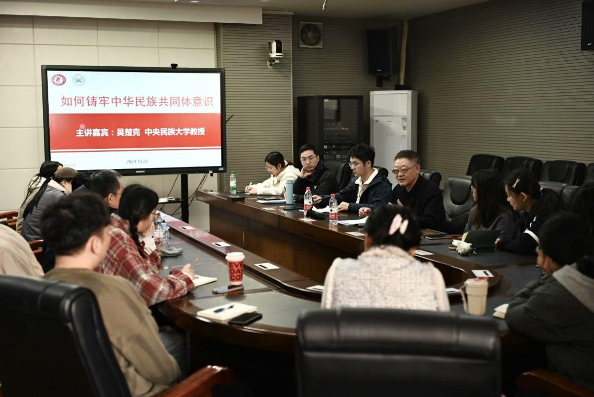 讲座进程中,吴楚克教授率先深入剖析了中华民族共同体意识的议题渊源,对习近平总书记于该领域的重要论述予以精细解读,阐释其内涵与意义,使听众明晰其理论深度与实践指向。