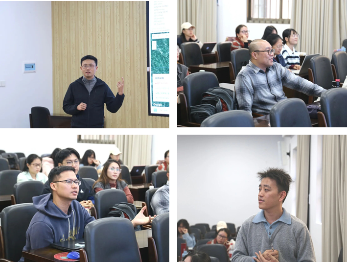 讨论交流环节,聂鑫、曾良恩及现场师生就提高耕地识别准确度等问题展开讨论交流。聂鑫指出,虽然高分辨率遥感技术在细碎耕地提取和撂荒监测方面显示出巨大潜力,但仍需着力解决土地状况识别误差、遥感影像不完整等方面的技术问题。曾良恩解释道,上述问题可以通过扩充数据源、提高遥感影像分辨率改进和提高技术质量。