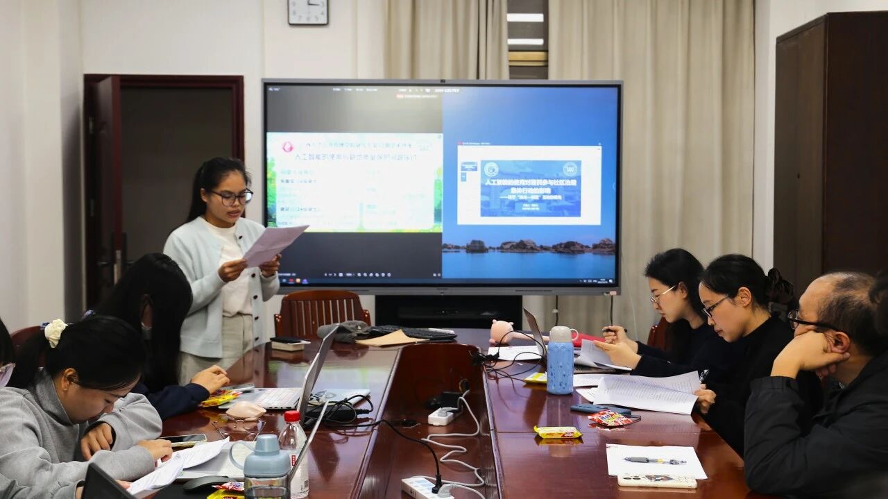 郭贝儿同学的分享主题为《人工智能的使用对居民参与社区治理集体行动的影响——“技术—制度”互动的视角》。研究紧扣人工智能应用场景的实践痛点,聚焦两大核心问题:一是居民使用人工智能工具会对其参与社区治理集体行动产生怎样的影响;二是社区自治制度能否有效调节该影响。研究借鉴并发展了Ostrom提出的社会生态系统(SES)框架,提出了技术-社会-生态系统(T-SES)框架,将人工智能界定为行动者可运用的新型技术工具。研究表明,在不考虑制度因素时,人工智能使用对社区治理集体行动的影响并不显著;而社区自治制度越完善,越能放大人工智能对社区治理集体行动的促进效应。