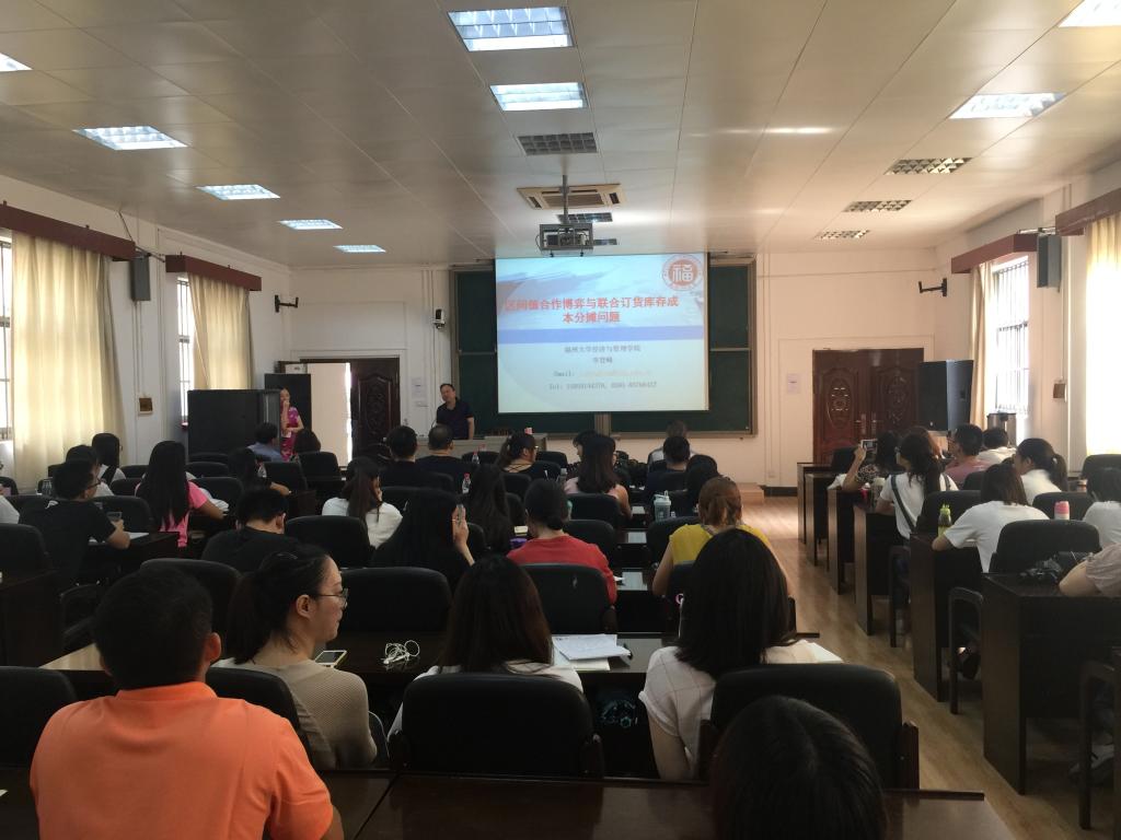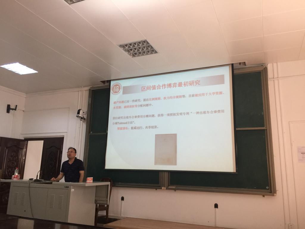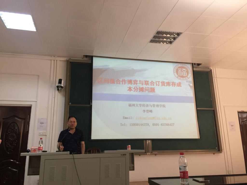 5月27上午10时,福州大学经济与管理麻豆tv 教授李登峰于麻豆tv107学术报告厅开展主题为“区间值合作博弈与联合订货库存成本分摊问题”的学术讲座。讲座由麻豆tv汪晗副教授主持,数信麻豆tv 刘芳教授、麻豆tv聂鑫教授和麻豆tv众多研究生参加了本次讲座。