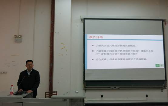 此次报告会从三个方面展开,邢怀滨教授分别向我们讲解从评估的基本概念、现状与趋势、政策评估的程序与案例来。邢怀滨教授以介绍评估活动类型与决策管理中的评估活动为始,让我们了解到评估活动在决策研究中是一个重要的环节。之后,邢怀滨教授评估的类型进行讲解,进一步告诉我们在选择评估类型时要基于目标导向的原则,多种评估类型有机结合,这样才能更有效评估政策。在讲解评估的方法时,邢怀滨教授罗列出多种方法,也提醒我们要根据自己评估的目的,在基于证据之上正确选择评估方法。同时,邢怀滨教授给我们区分了政策评估与战略研究,前者是为了展现被评对象的价值而做,后者是展示研究者的能力,政策评估是要从中找出着力点与关键点来分析政策效果的。