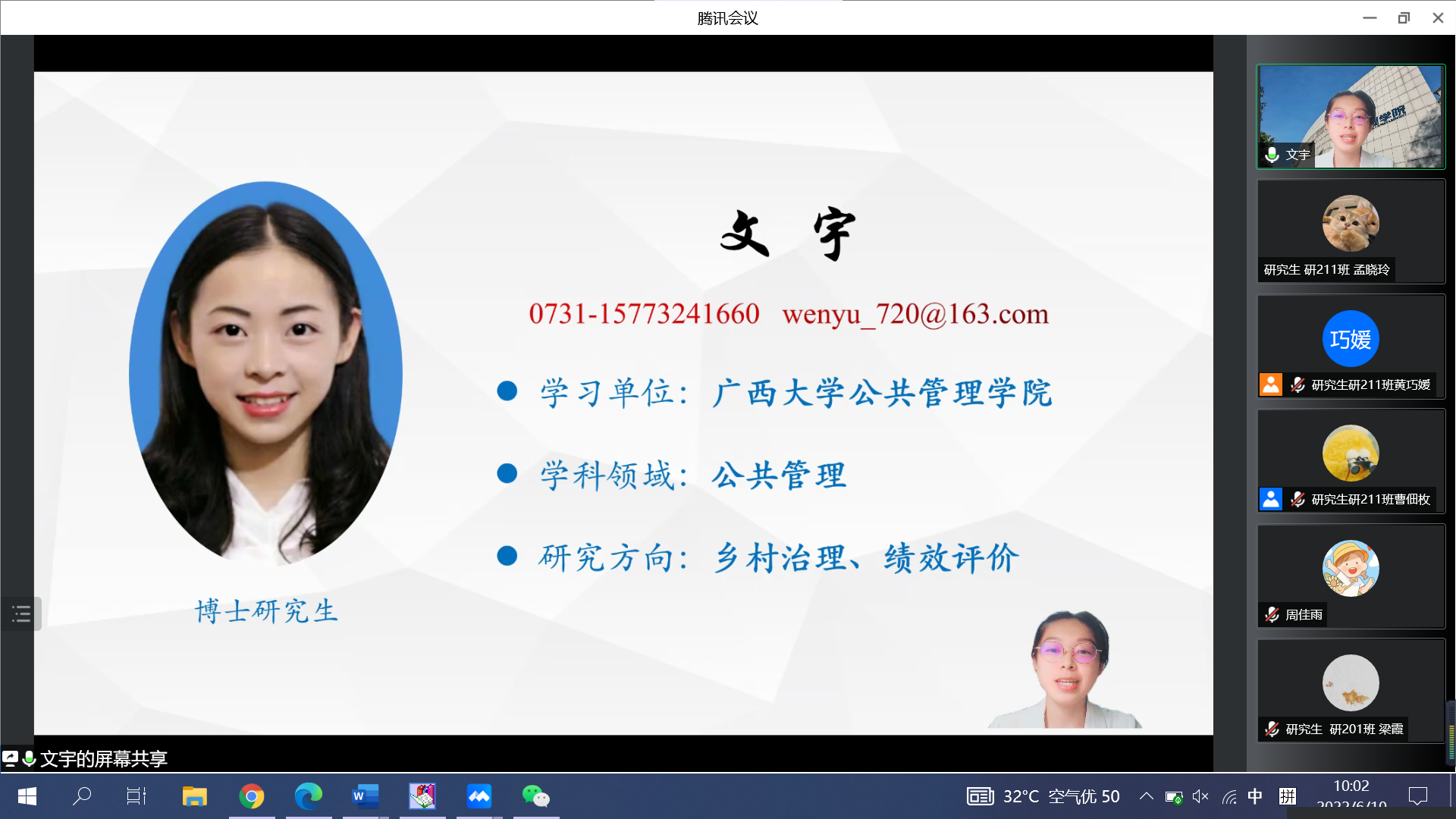 2022年6月10日10:00,麻豆tv 第25期学术沙龙以腾讯会议的形式顺利开展。本期学术沙龙的主题为“公共政策与乡村治理”,邀请麻豆tv苏毅清老师参与讨论,文宇、李莹两位同学作为分享人分别就她们的论文进行分享,吸引了麻豆tv众多博士生、硕士生前来参加。本期沙龙由学术部黄巧媛同学主持。