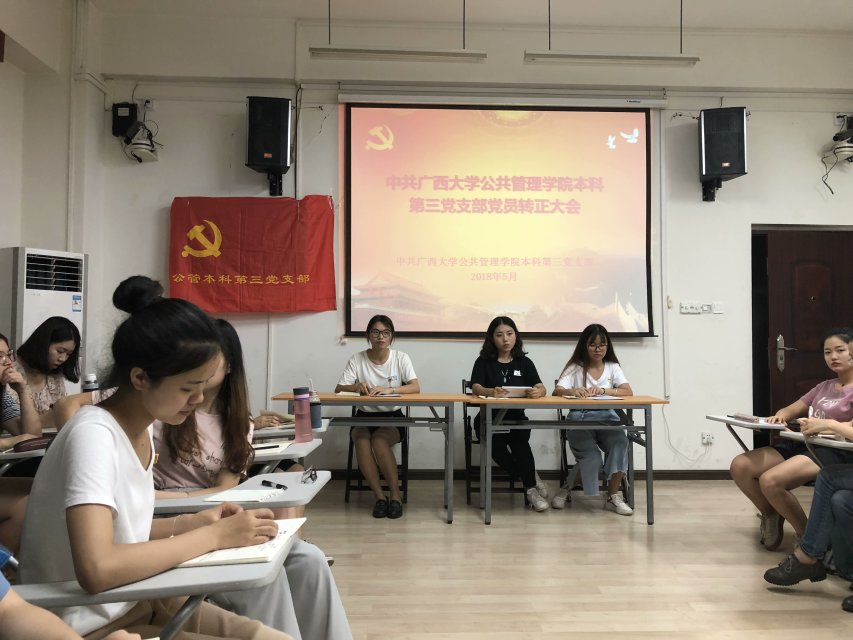此次党员转正大会对龙春雨、许蓝雪、谢秋萍三位同志进行转正。三位同志在进行转正申请书宣读后,经过民主评议和公开投票,正式党员一致同意龙春雨等三位同志按期转正。三位同志也表示今后会继续学习,不断进步。