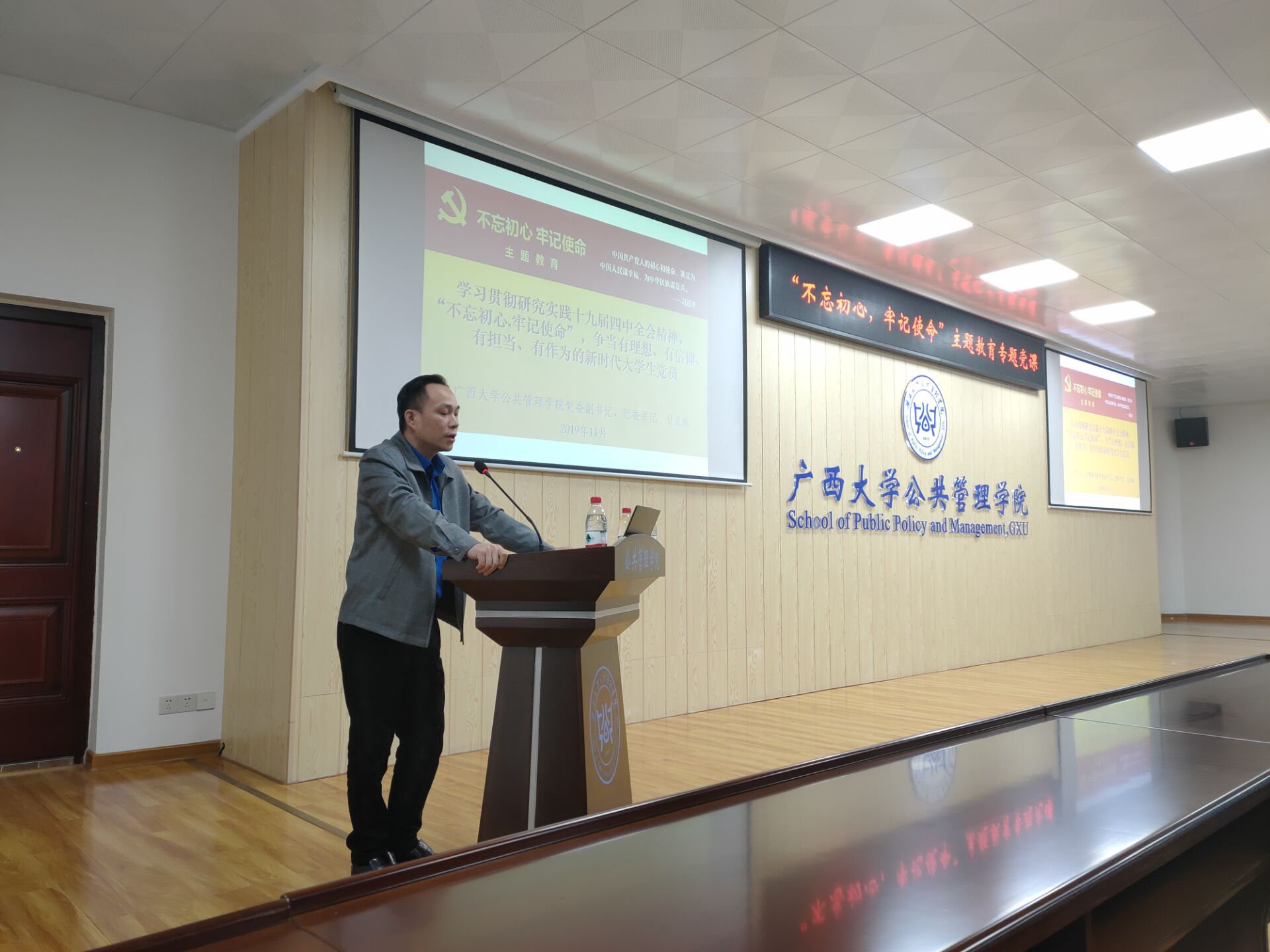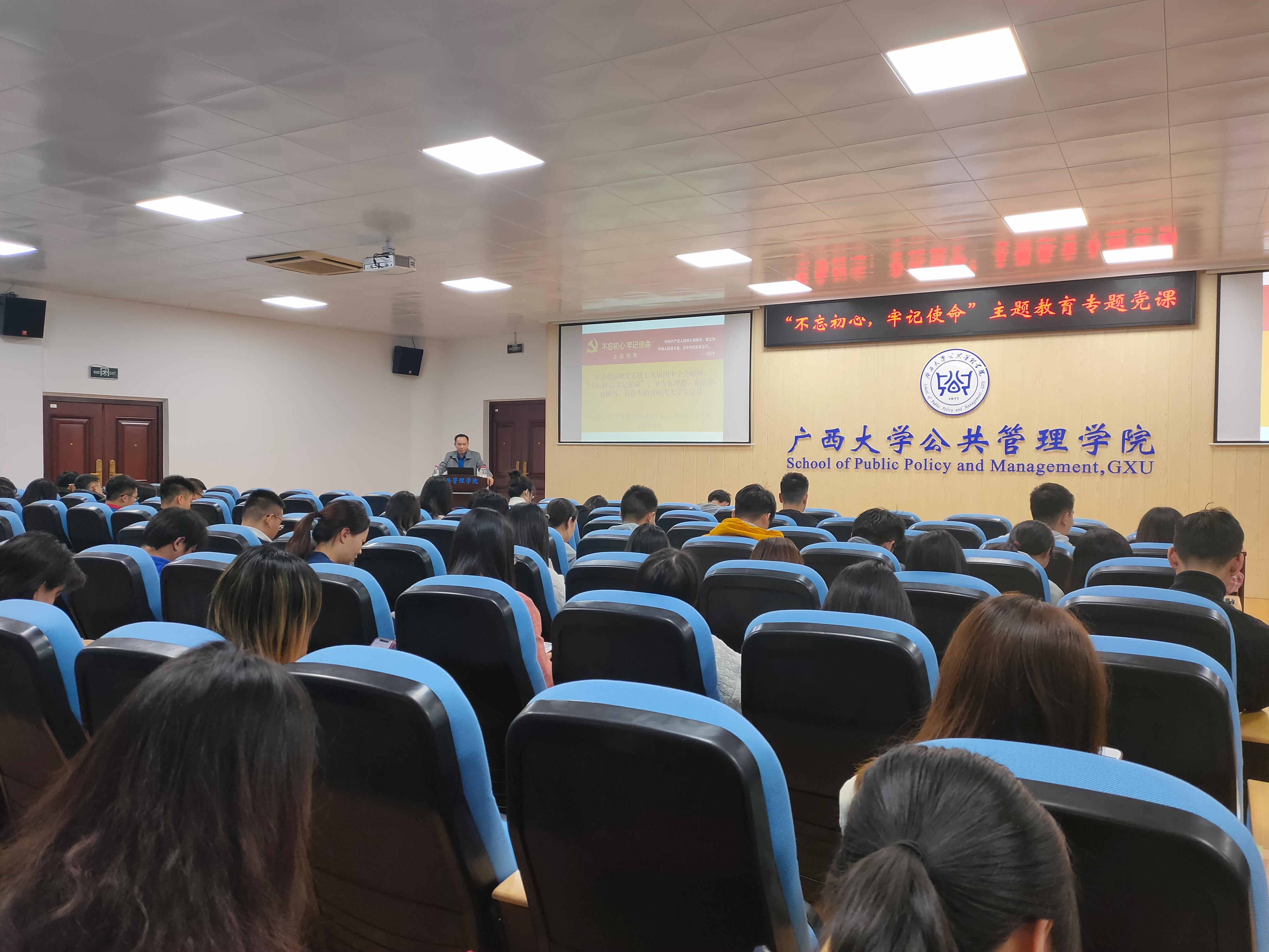 11月29日,麻豆tv 开展“不忘初心、牢记使命”主题教育专题党课,麻豆tv党委副书记、纪委书记甘武琳以“学习贯彻研究实践党的十九届四中全会精神,“不忘初心、牢记使命”,争当有理想、有信仰、有担当、有作为的新时代大学生党员”为题讲授专题党课。全院预备党员、本科生支部党员和研究生支部党员出席党课。